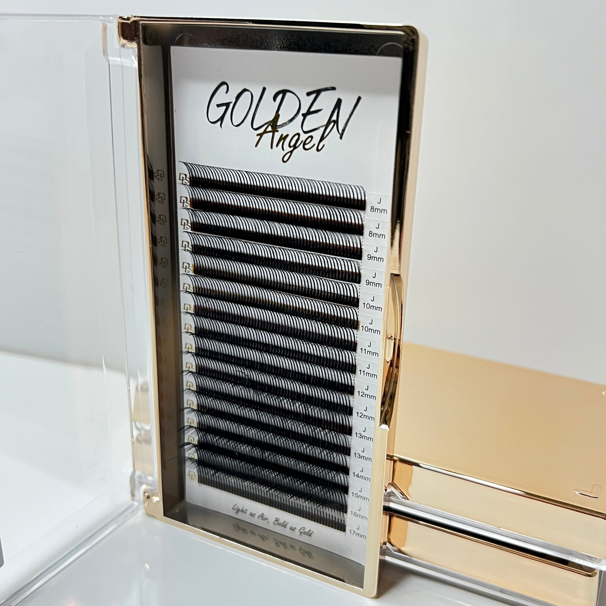 Introducing our Golden Angel Luxe Collection featuring the perfect 5D loose root in J Curl lashes designed for an elegant soft lash style. Each lash is crafted from high-quality loose fibers that glide off the strip effortlessly, ensuring a smooth application every time.